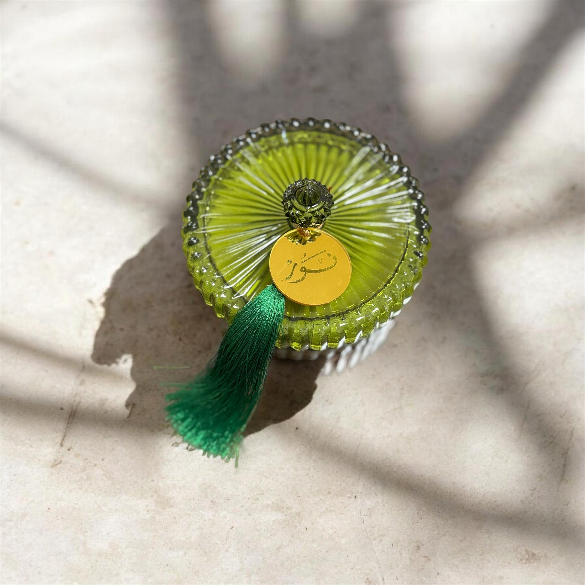 Thoughtfully crafted to bring warmth and serenity into your space, the Noor Essence Candle is housed in a beautifully ribbed round glass jar, finished with an elegant tassel detail. Designed to cast a soft, ambient glow, its multi-wick form creates a fuller light—perfect for Ramadan evenings, iftar tables, and quiet moments of reflection.